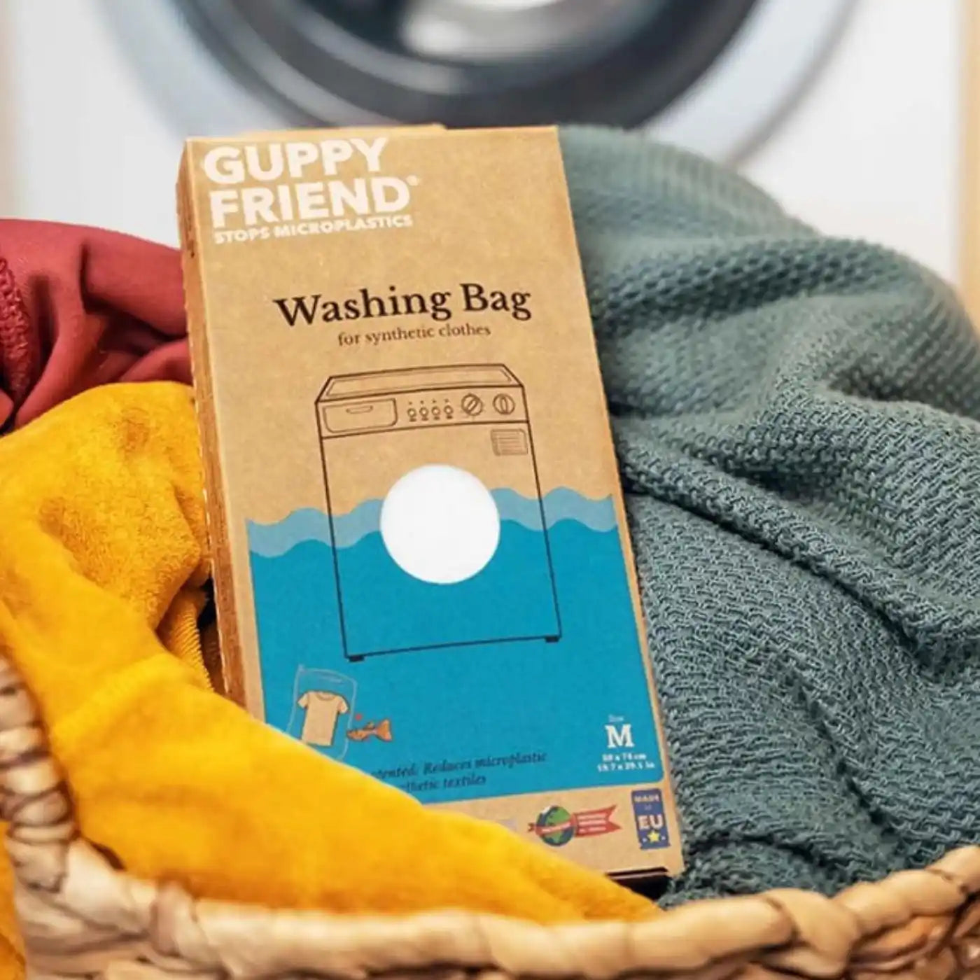 Pour protéger et garder un maximum vos vêtements tout en réduisant leurs impacts, lavez-les avec un sac de protection GuppyFriend. Ils permettent de réduire les micro-particules rejetées qui finissent dans les océans.